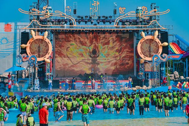 乐海神话世界五大神话主题区巧妙融合水上娱乐与国风文化,带来独具特色的夏日畅爽游玩体验。许多游客在万平造浪池参与电音狂欢,挑战彩虹滑道、仙宫水寨和奇幻漂流,尽情体验清凉玩水的乐趣;全天300多场主题演出贯穿游玩动线,哪吒、二郎神、月老等百余名神话NPC随时开启互动,游客齐先生感叹:“看到预告就心动了,孩子是西游迷,能亲身体验神仙巡游很开心,也很有意义!”